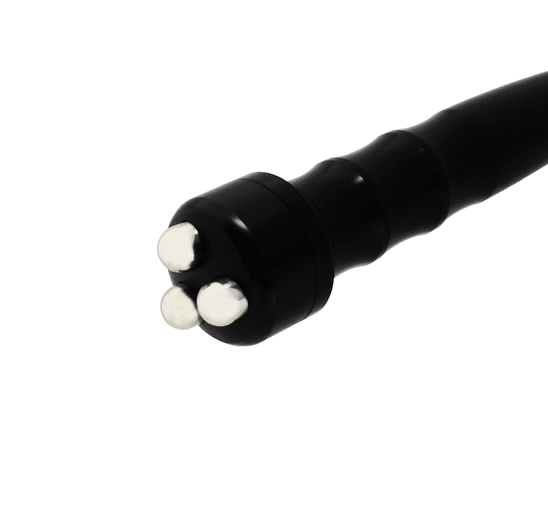 表層部位に加温対極プレートを使用せずに、先端の三点を皮膚に接触させることで深部加温が可能になり、首・肩・顔などの凝り、リフトアップ、等に効果が期待できます。